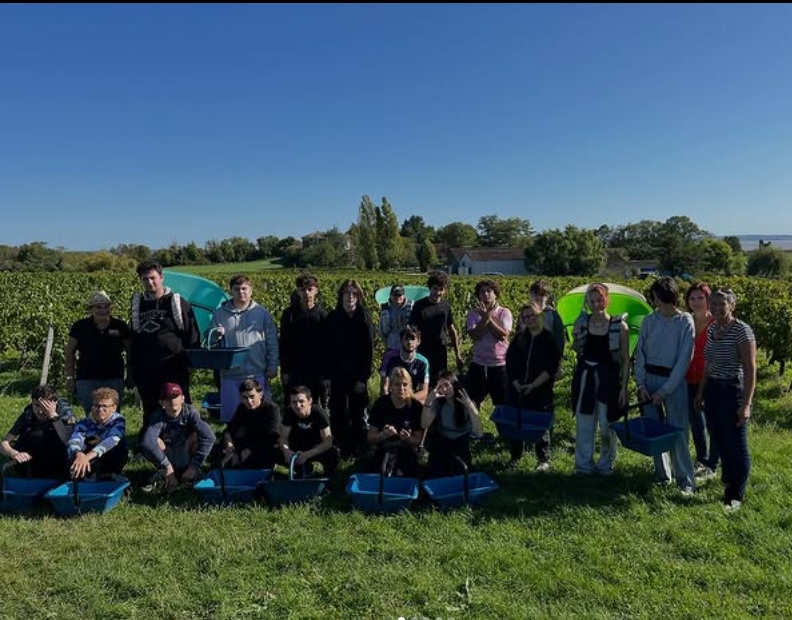 Sous un soleil radieux, les élèves des MFR de Lesparre et de Saint-Yzans découvrent aujourd’hui l’univers des vendanges au Château Tour Castillon.